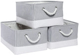 *GOOD DESIGN: Sturdy metal rod frame around the top keep the basket shape, braided soft cotton rope handles for easy slide in/out from the shelf, closet, cabinet, cupboard or wardrobe.