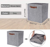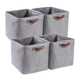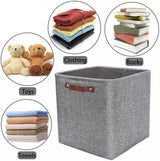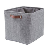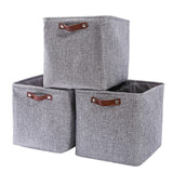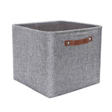 30cm Grey Fabric Storage Cube Boxes with Leather Handle For Cupboards