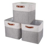 30cm White Grey Cube Storage Boxes with Leather Handle For Nursery