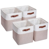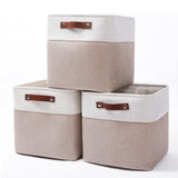33x33x33cm Storage Baskets with Leather Handle White & Khaki
