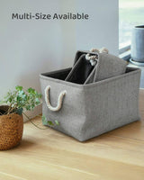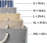 Available in sizes ranging from 25x25x25cm to 33x38x33cm, from size small to jumbo, are perfect for organizing any space in your home. Crafted from durable fabric and featuring sturdy rope handles, they provide a stylish yet practical solution for storing clothes, toys, books, and more.