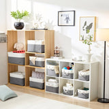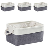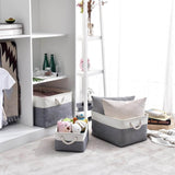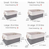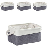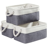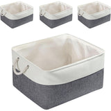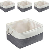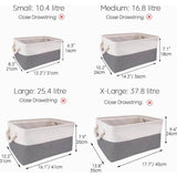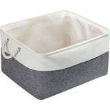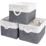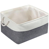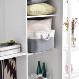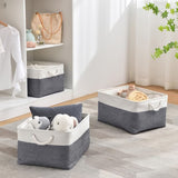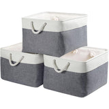 Foldable Canvas Storage Baskets with Handles | Fabric Organizers for Home, Wardrobe, Nursery, Cold Grey and White