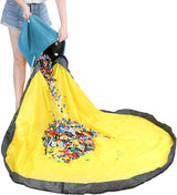 CLEANUP IN SECONDS: Pour toys right onto the integrated play mat, and let little imaginations run wild without a wild mess. Toys slide away for storage in a few seconds with a quick pull of the handles. Toys not included. Uses: toy brick, magnetic building toys, dress up dolls, toy cars, classroom student prizes, and more.