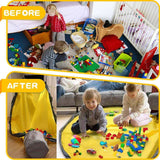 CLEANUP IN SECONDS: Pour toys right onto the integrated play mat, and let little imaginations run wild without a wild mess. Toys slide away for storage in a few seconds with a quick pull of the handles. Toys not included. Uses: toy brick, magnetic building toys, dress up dolls, toy cars, classroom student prizes, and more.