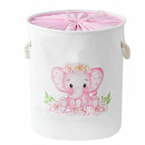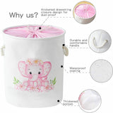 Round Waterproof Elephant Laundry Basket Pink/Blue