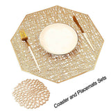 6PCS/Set Vinyl Gold Placemats And Coasters (Octagonal)