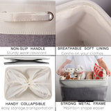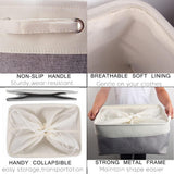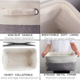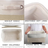 Foldable and with strong metal frame around the top keeps the basket shape, dual Non-slip handles for easy slide-in/out from the shelf, closet, cupboard, or wardrobe!