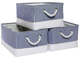 Blue Stripe Collapsible Storage Boxes Large, 3 Pack