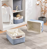 Storage baskets and bins are household staples in helping with your home organizational projects, but also doubles as a charming decoration. With the PU/PVC style handles for easy slide in/out from shelf, closet, cabinet, cupboard or wardrobe.