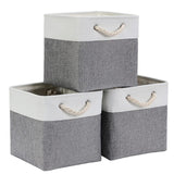 Transform your living space with our grey and white fabric cube storage boxes. Crafted from premium canvas and featuring soft cotton rope handles, these foldable fabric baskets bring both style and functionality to your home. Perfect for wardrobes, bedrooms, cupboards, and more, they offer a chic solution for storing clothes, towels, and essentials. Available in sizes from 25x25x25cm to 33x38x33cm, and in sets of one, three, or four, these kallax boxes seamlessly blend with any décor.